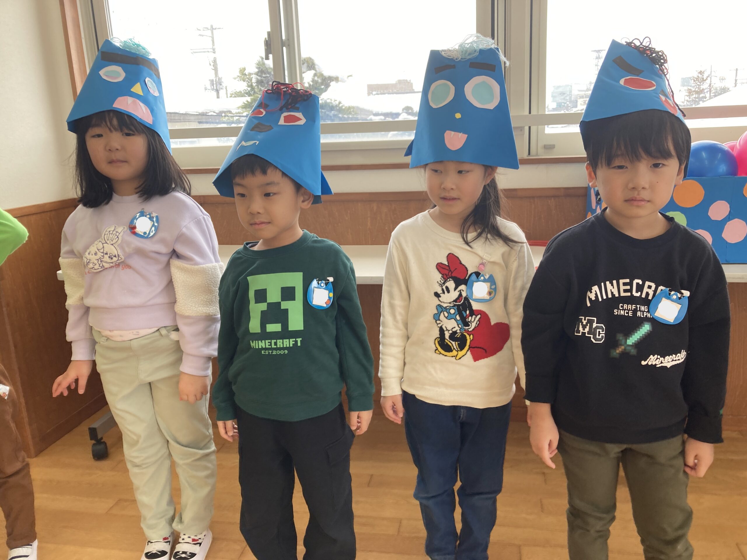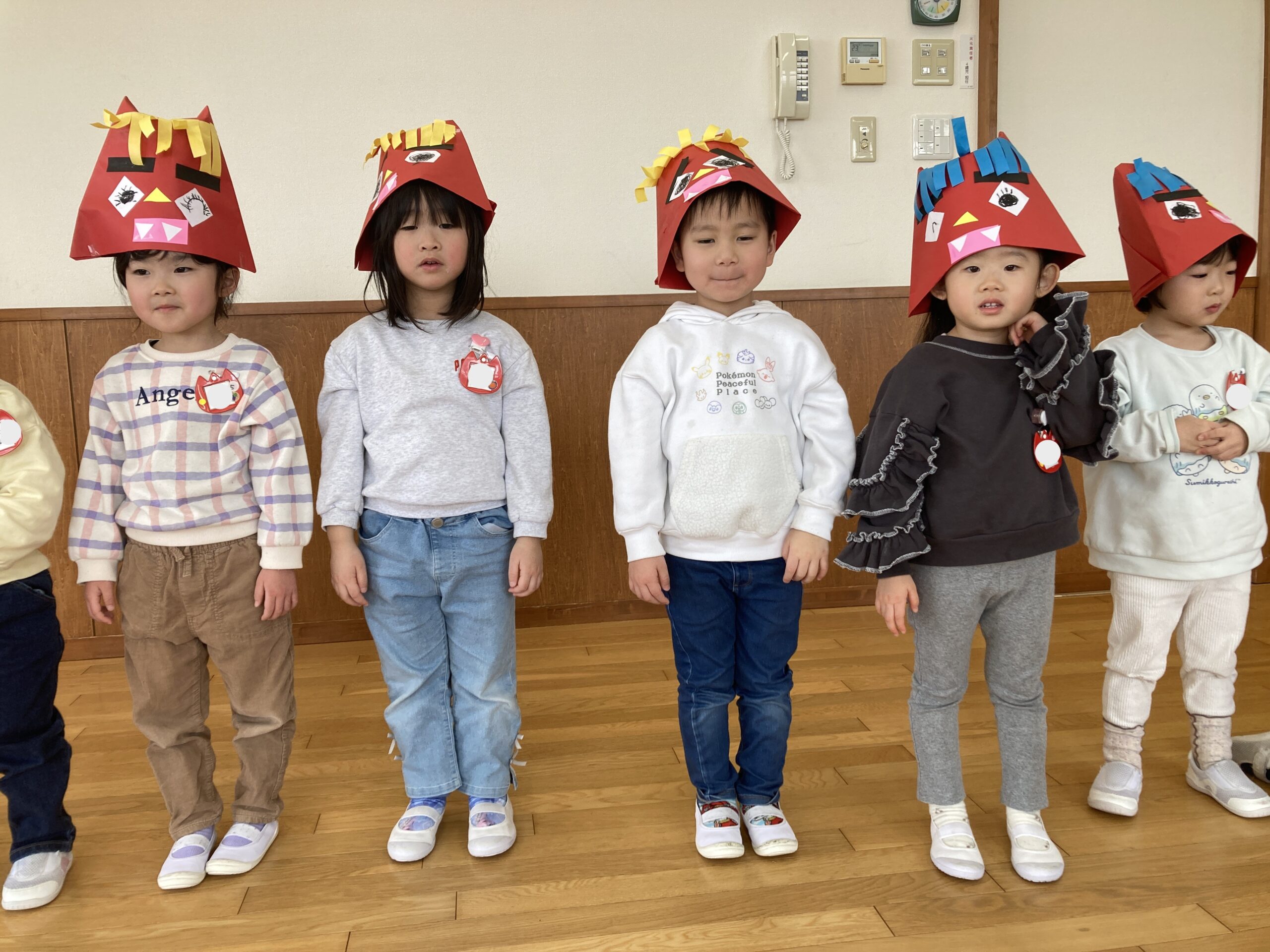 2月、シャロンの日は豆まき! 自分の心の中にいる悪い鬼を思い浮かべながら思い思いに鬼のお面の制作をしました。 それぞれ個性あふれる素敵な鬼が出来上がりましたよ。 豆まき当日は、ボール当て鬼退治を行いました。 「鬼は外~!福は内~!」という元気な掛け声と共に勢いよくボールを投げていました。 無事、鬼退治ができて皆の心の中に福が入ってきたことでしょう♪