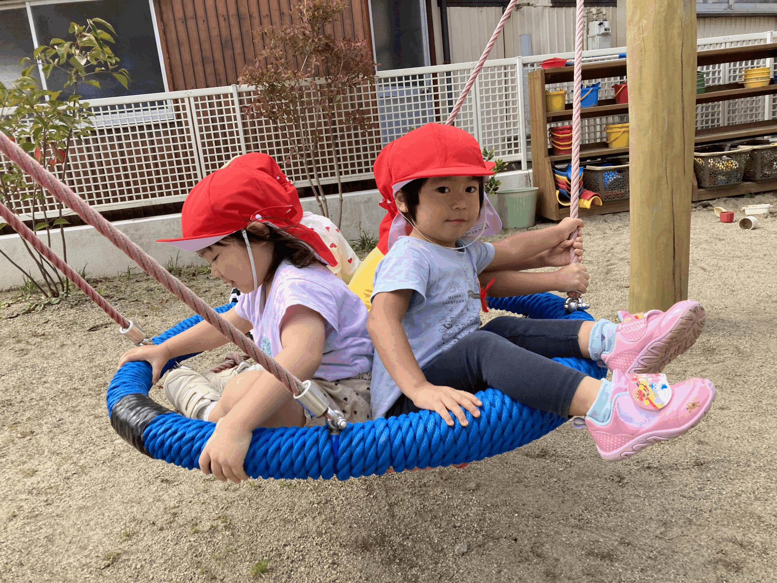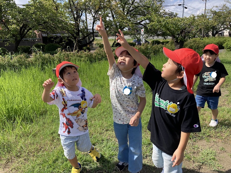 心地いい天気の中、お友だちと一緒に身体を動かす楽しさを味わっていますよ。
