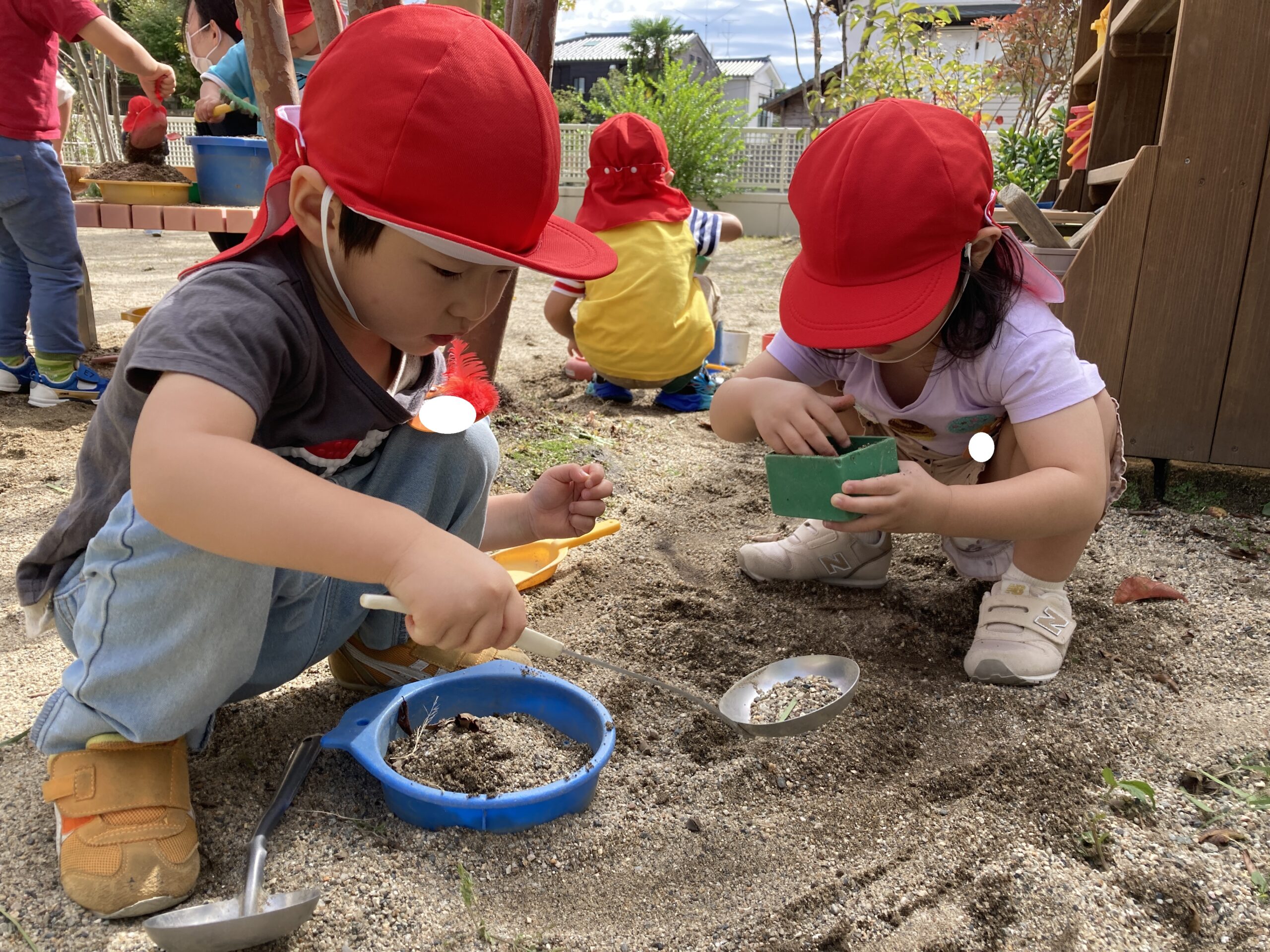 秋の訪れを感じながら戸外遊びを楽しんでいます♪