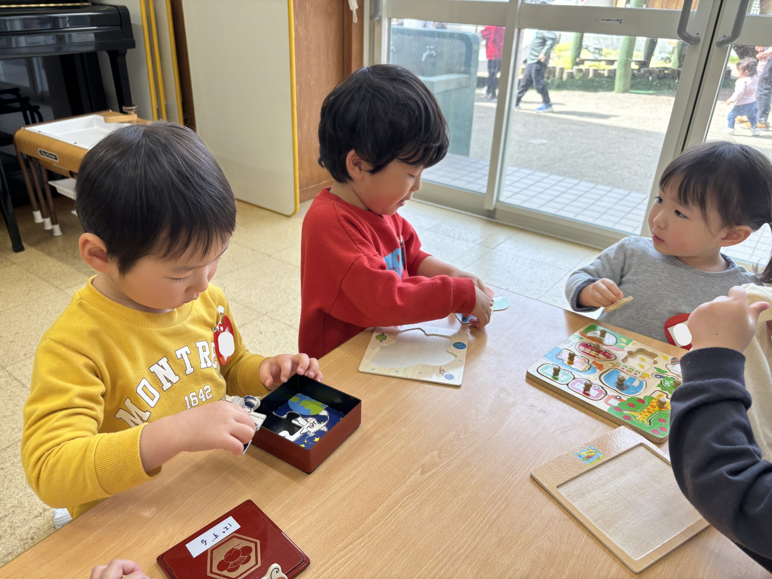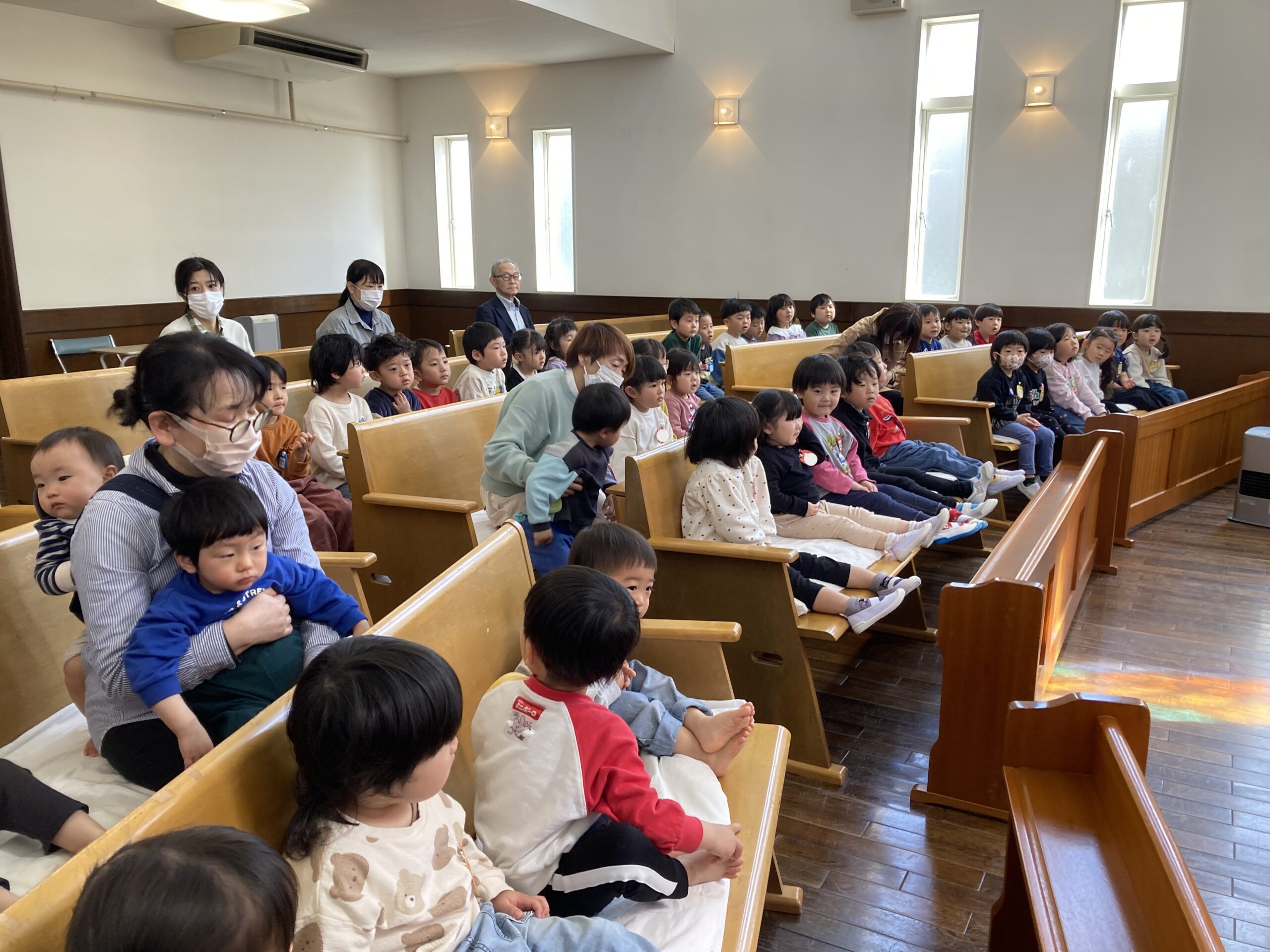 始業式が行われ、2026年度あやめこども園のスタートです! 進級した子どもたちは新しいクラスや名札にドキドキわくわくした表情でした。 入園式にも行われ、元気いっぱいの子どもたちの声で園内が賑やかになりました♪ 進級や入園で少し不安もあり、涙が出ていた子どもたちも少しずつ好きな遊びや場所を見つけて笑顔で過ごせる時間が増えてきました。 神さまが出会わせてくれた新しいお友だちや先生とたくさん楽しいことをして遊びましょうね。